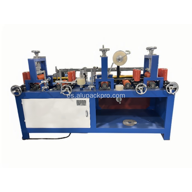 Es una máquina empacadora laminadora de película protectora para perfiles de aluminio. La película se fija a la superficie del perfil para proteger el aluminio acabado de daños en el proceso de manipulación, inventario, transporte, procesamiento, instalación, etc.,el equipo de instalación la arranca dejando la superficie limpia como nueva.